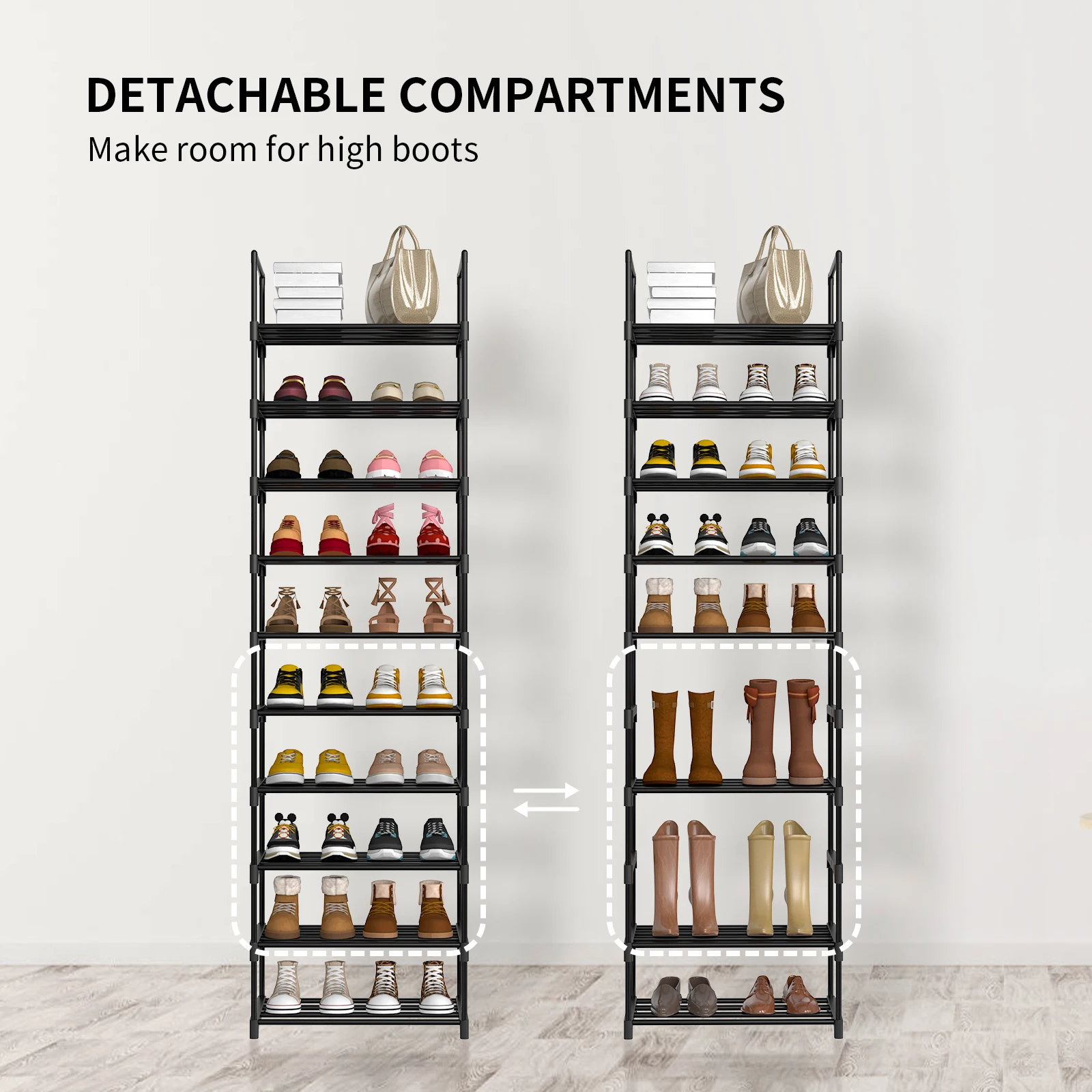 [Spacious yet Space-Saving] Thanks to its slim figure, this 10-tier shoe rack takes up little floor space yet offers enough storage for 20 pairs of shoes