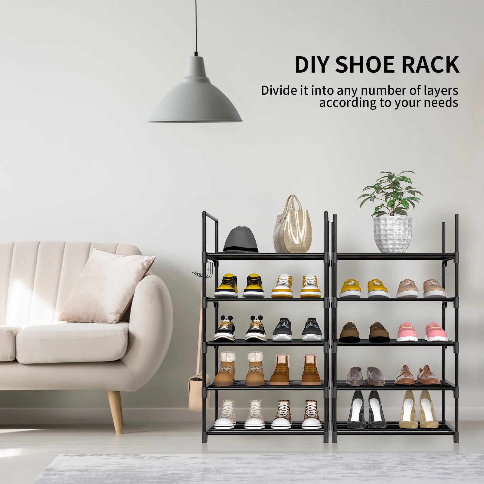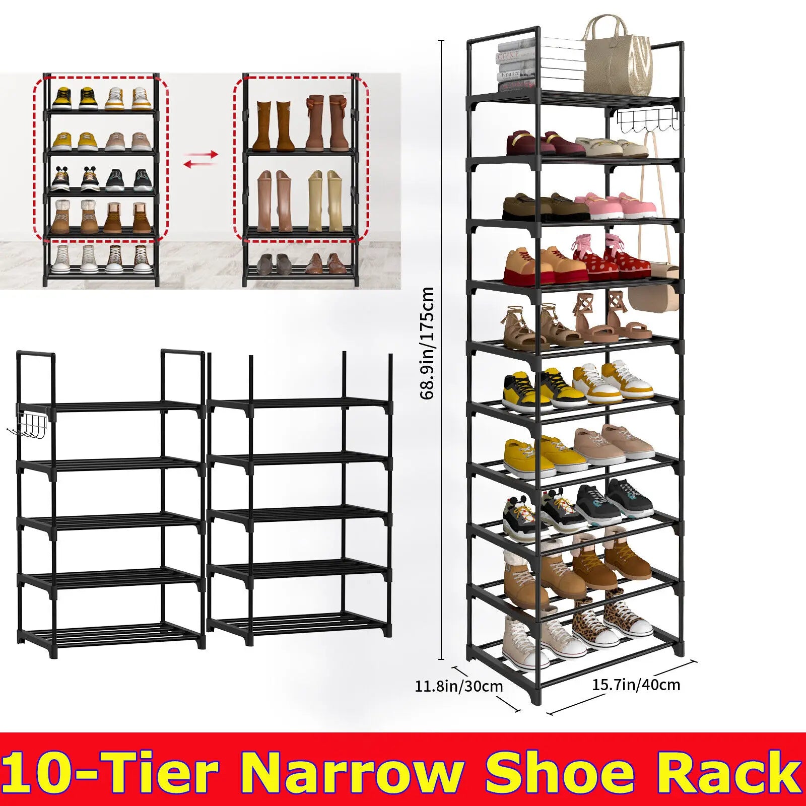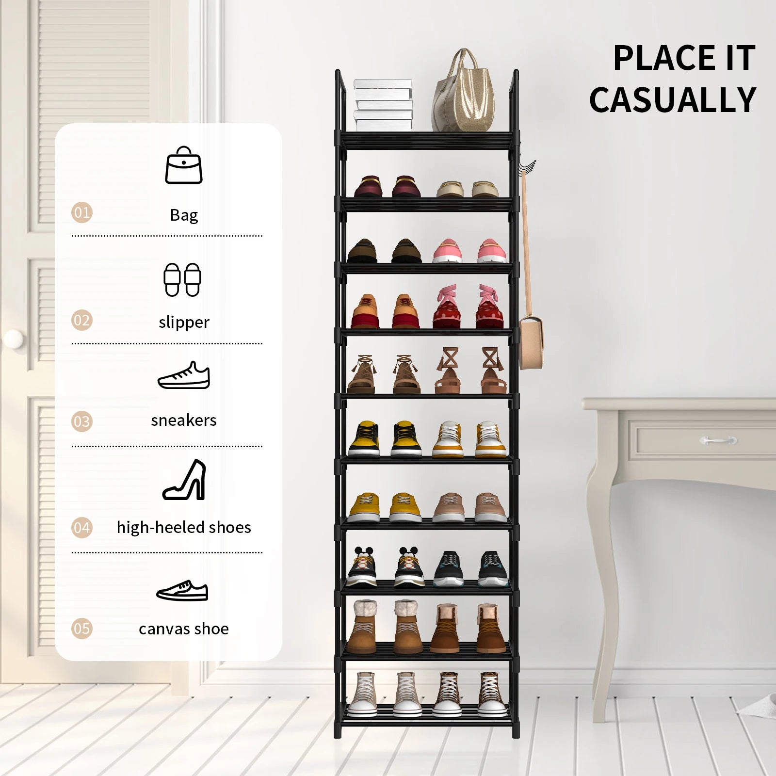 Shoe Rack,10-Tier Metal Shoe Storage Organiser, Metal Frame, Space-Saving Rack,for Room, Hallway STORAGE SHELVES STAND WITH HOOK