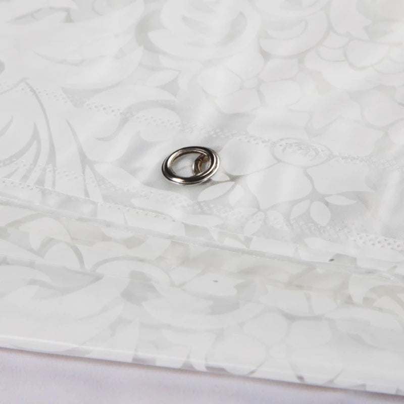 Shower Curtain White Floral Print Peva Fabric Bathroom Curtains Waterproof Mildew Proof Transparent for Toilet with Hooks 200cm