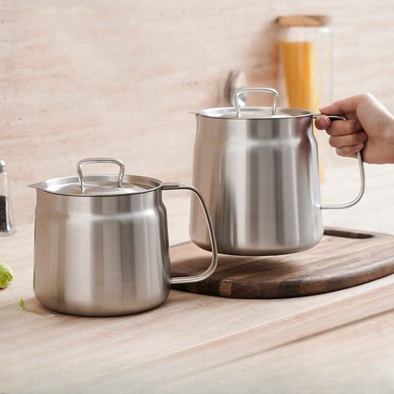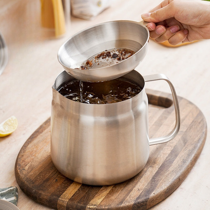Stainless steel 304 oil filter pot, household oil storage tank with filter screen for separating oil residue, frying basket, fry
