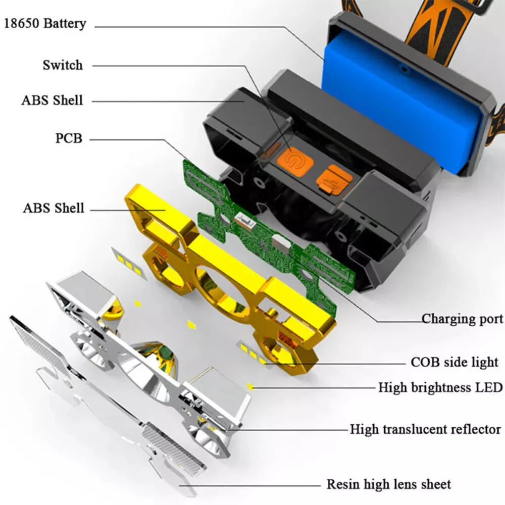 IPX5 Waterproof: The headlamp is life waterproof that can be used on rainy days, but not in water.