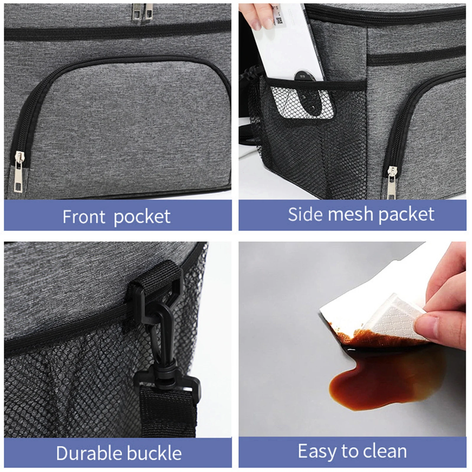Features: 1.Long-lasting Freshness: The advanced inner aluminum foil and EPE insulation layer in this thermal insulated lunch bag help keep food and drinks fresh, maintaining the right temperature for hours whether you're storing hot or cold items. 2.Fashionable Design: Crafted from sturdy, waterproof Oxford fabric with sturdy handles, an adjustable shoulder strap, and extra front pocket, this food storage lunch box offers a stylish look and ample space for essentials like phones and keys. 3.Safe Materials: Made from 100% non-toxic, three-layer materials, this insulated lunch box bag keeps your food protected. Enjoy optimal insulation for about 4 hours hot, 6 hours cold, or up to 8 hours for salad and fruit. 4.Spacious Capacity: Measuring 295.00x220.00x210.00mm, this thermal cool bags design fits all your lunchtime needs lunch boxes, canned food, fruits, bottles, and snacks, making it ideal for work, school, travel, or picnics. 5.Versatile Use: With its modern, unisex style, this portable thermal lunch tote bag is suitable for all ages and greatly fits your lifestyle. Ideal for work, picnics, BBQs, meal planning, gym, travel, or daily shopping. Specification: Product Size: 295.00 x 220.00 x 210.00 mm Product Size: 11.61 x 8.66 x 8.27 inches Origin: Mainland China Material: PVC