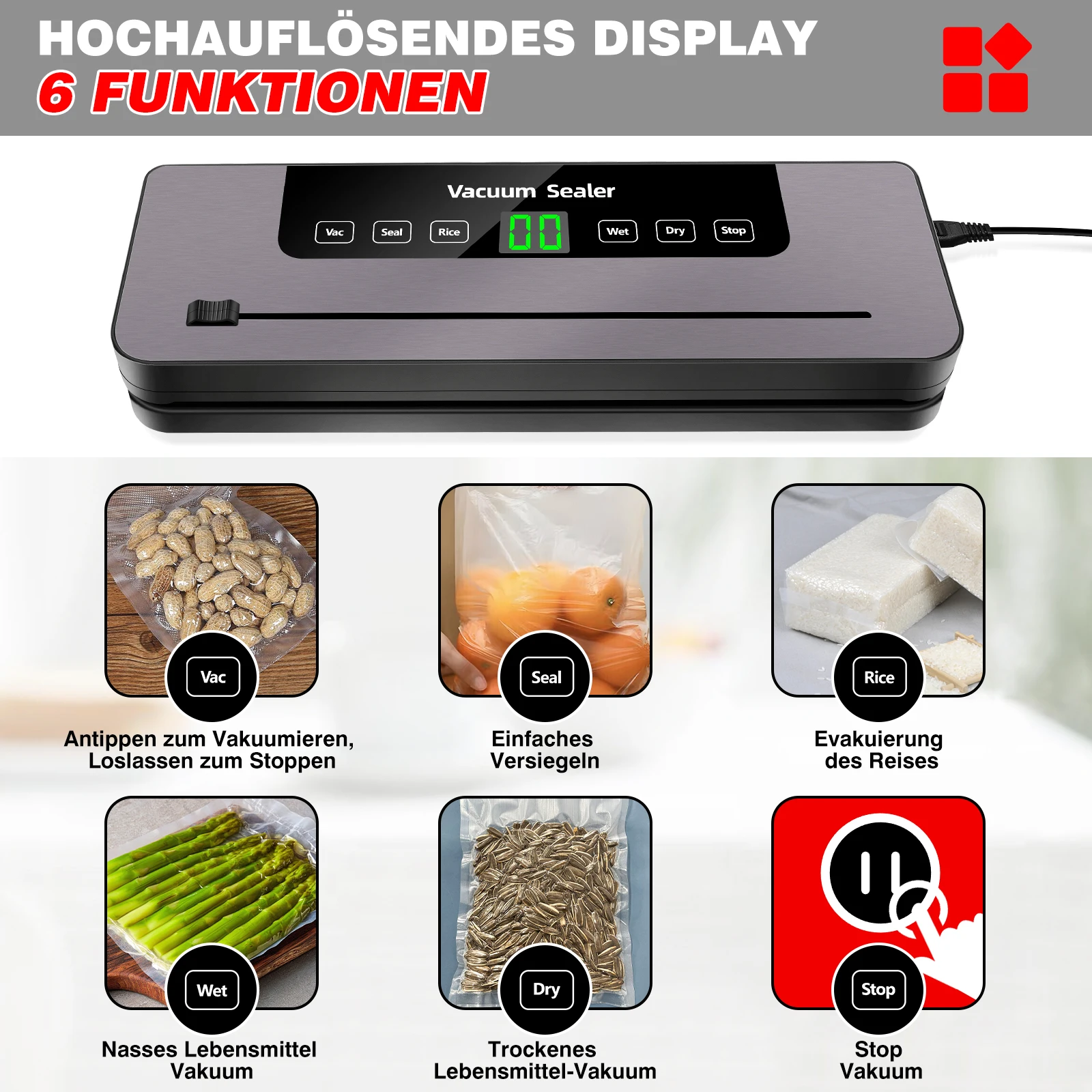 【Preserve Freshness & Reduce Waste】Our food sealer machine will keep your food fresh for up to 25 days. By removing air from the storage bags, our machine creates an airtight seal that locks in flavors, nutrients, and moisture. Not only helps your meals taste better for longer but also reduces waste by extending the shelf life of your ingredients.