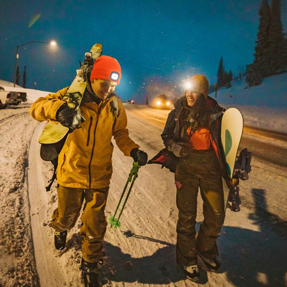 Winter Warm Knit Beanie 8 Hours High Powered Light 4 LED Beanie Hat USB Rechargeable Hands Free Headlamp Cap for Running Hiking