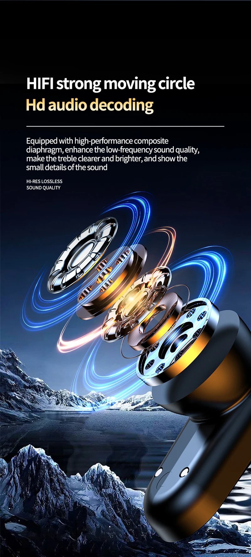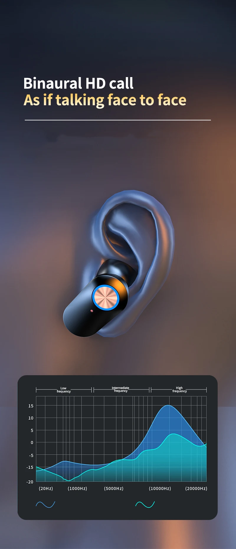 Wireless Headphones LED Power Display Touch Control Earphones Game Sports Headset Music Earbuds With Microphone